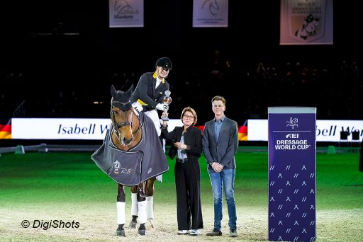 Germany’s dressage queen Isabell Werth repeated her victory of last year in the FEI Dressage World CupTM presented by RS2 Dressage Grand Prix with Emilio. The pair was awarded 77.19% for their test. Werth is unbeaten in this world cup season and top favourite for the world cup title. Runners-up were Denmark’s Daniel Bachmann Andersen and Blue Hors Zack with 76.109%. Third and fourth place went to German combinations: Benjamin Werndl with Daily Mirror (75.739%) and Helen Langehanenberg with Damsey FRH (75.370%). Langehanenberg is the current leader of the World Cup standings.